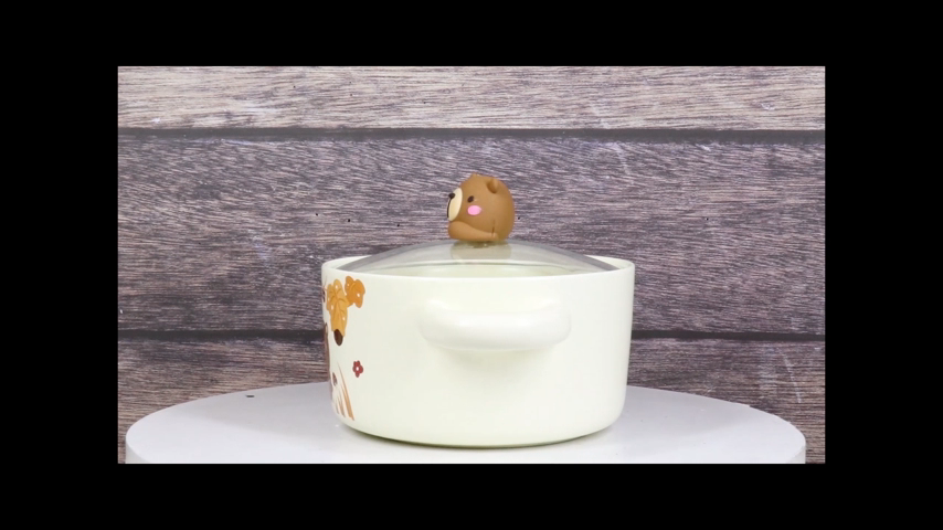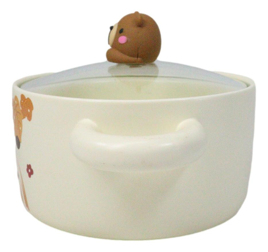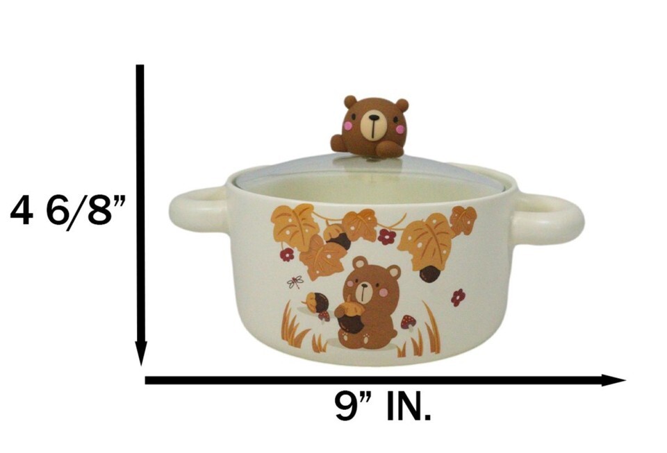 Autumn Brown Bear With Acorns Donburi Ramen Soup Bowl With Glass Lid And Handles