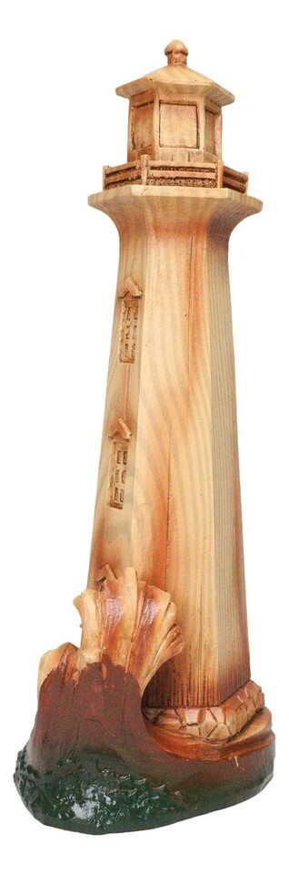 ? For many years, the lighthouse has been a symbol of inspiration and hope for many people. This nautical lighthouse in faux wood finish is the perfect decor for that vacation home or office of yours, whether by the sea or far inland. The spirit of the seas will come right along with this sculpture featuring a multi tiered floor structure with the light beacon at the top. The lighthouse rests on island rocks, while withstanding vehement crashing waves.