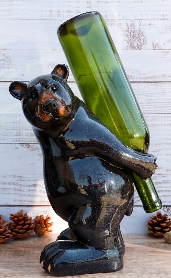 ? Why settle for an ordinary wine bottle holder to display your favorite wine? You don't have to as an intricately detailed black bear lies on his back taking in a bottle of your finest vintage. It's safe and sound with this menacing fellow around! A true conversation starter at your next party or family gathering. A great gift idea for any wine enthusiast on your Christmas shopping list.