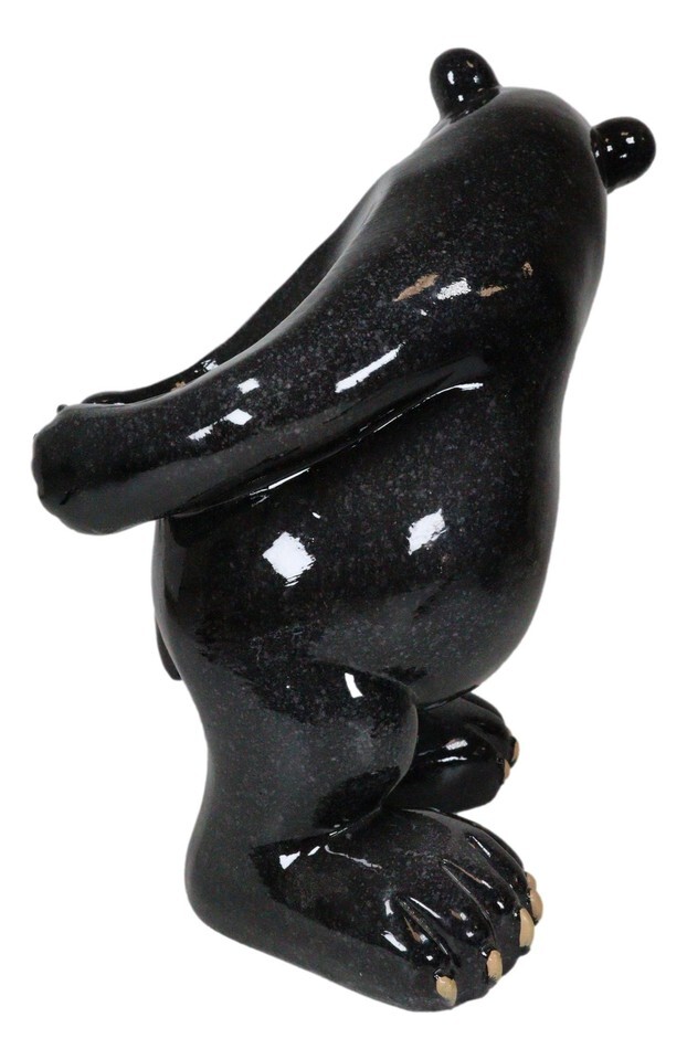 ? This Black Bear wine bottle holder is made of polyresin, hand painted and polished individually.