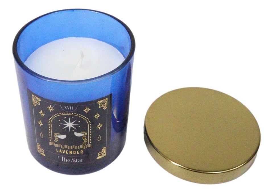 Wicca Witchcraft Mystic Tarot The Star Lavender Scented Pillar Candle Gold Lid