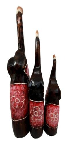 Balinese Wood Handicrafts Large Abstract Jungle Pink Elephant Figurine Set 20"H