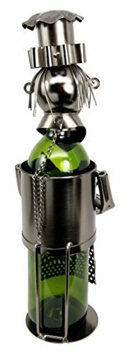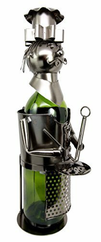 Ebros Master Head Chef With Pan & Spatula Steel Metal Wine Bottle Holder