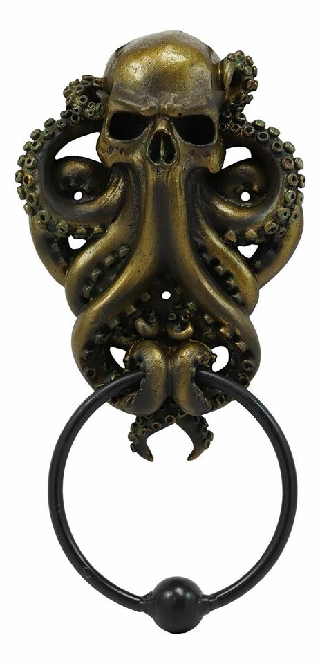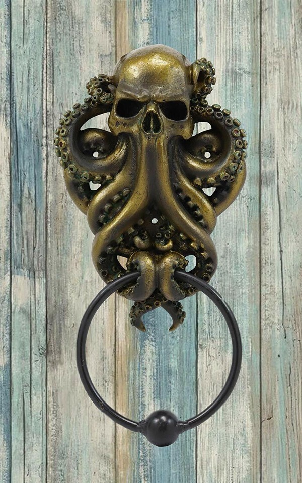 ? This Octopus Cthulhu Door Knocker is made of designer composite resin, hand painted and polished individually. The knocker part is made of cast iron metal. Color Tone May Vary.