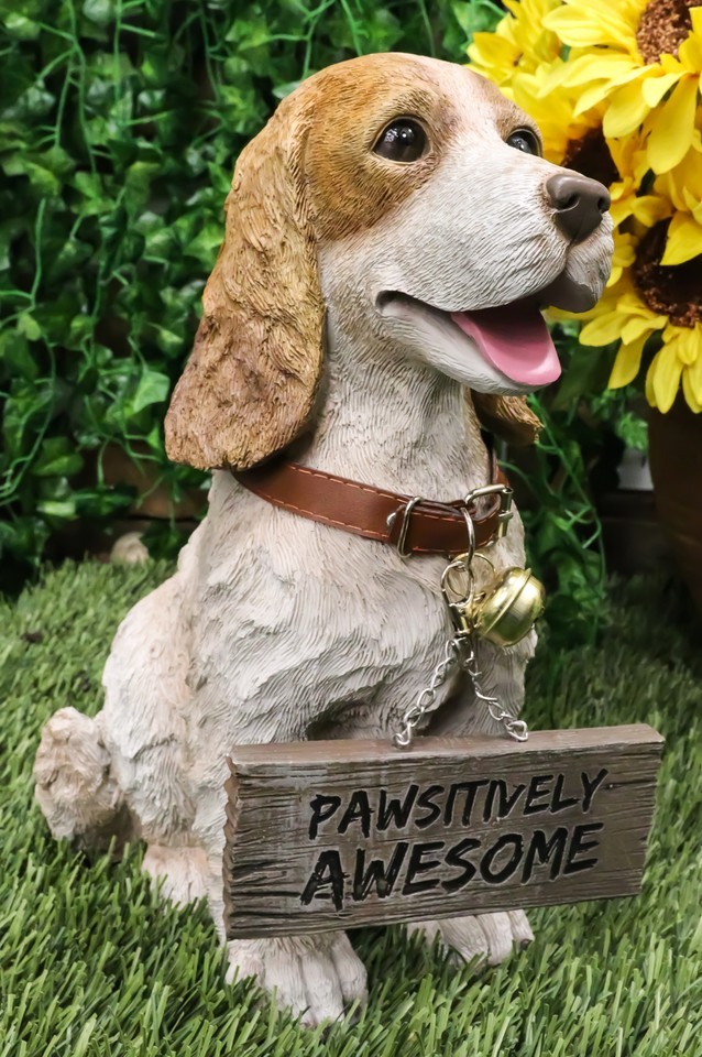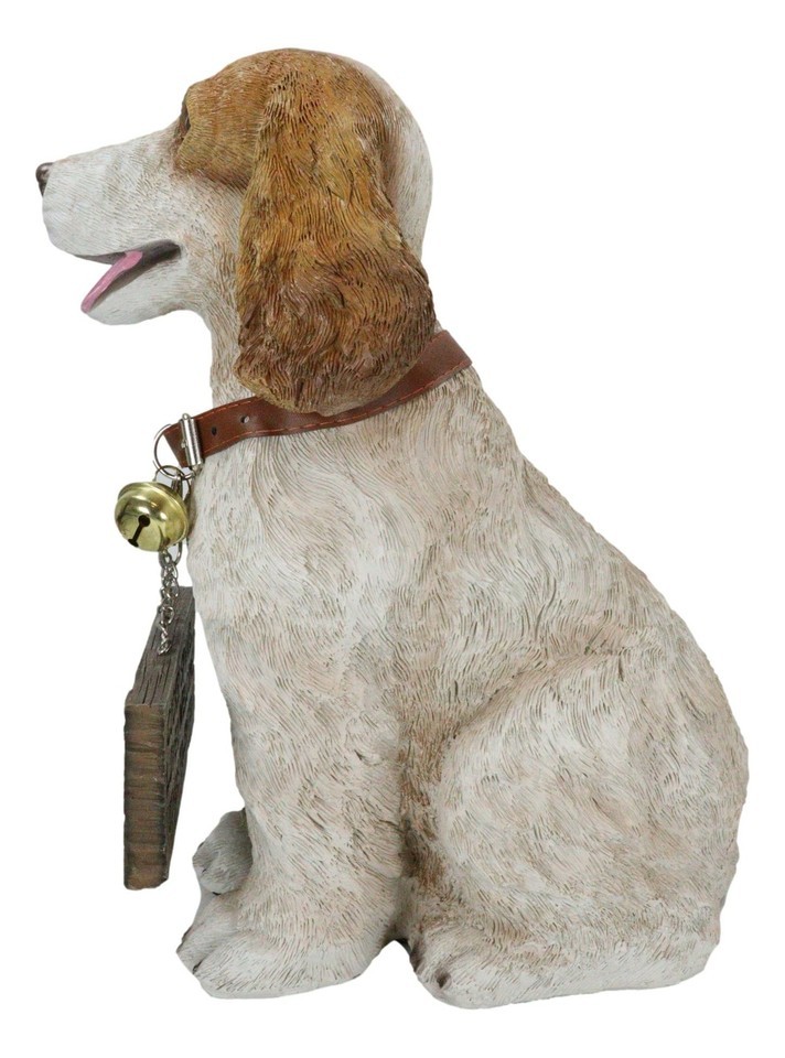 Tan And White English Cocker Spaniel Dog With Welcome Jingle Collar Sign Statue