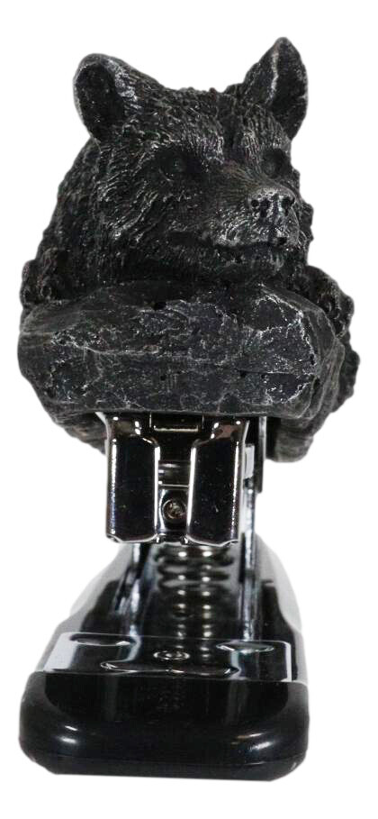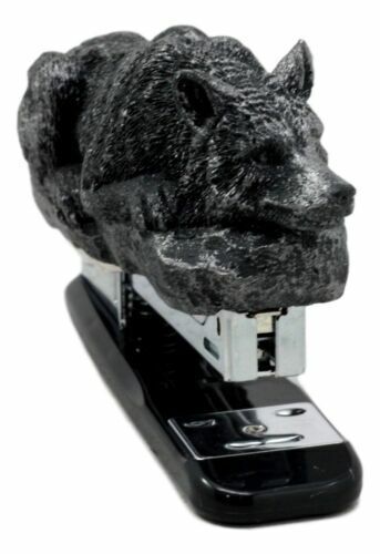 ? Bring life and style to an office accessory with this wolf stapler. Cast in resin with faux stone finish, this resting wolf will bring the totem spirit into your room. The stapler is sturdy to the touch and ergonomic for light duty use.