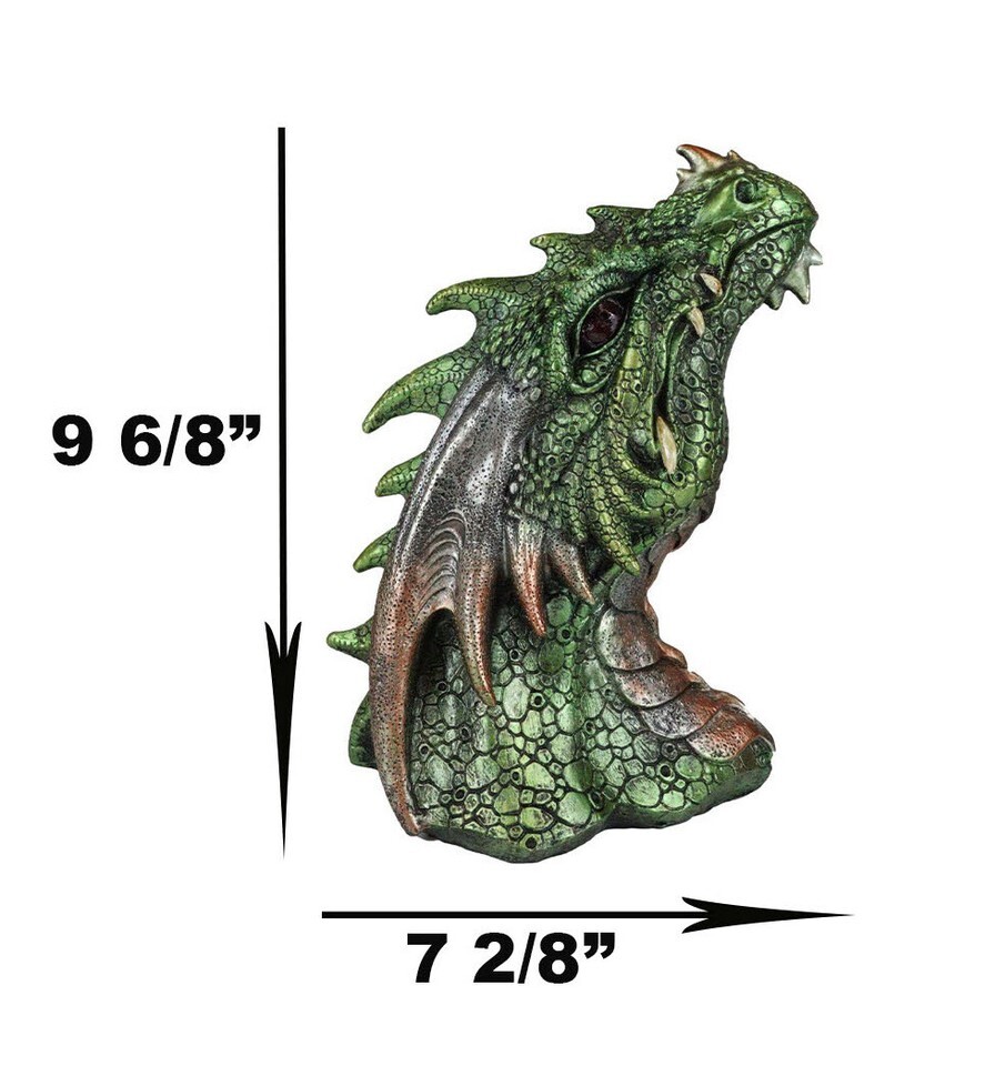 ? This Green Dragon Wall Plaque With LED Eyes measures 8" tall, 7.5" long and 7.25" deep.