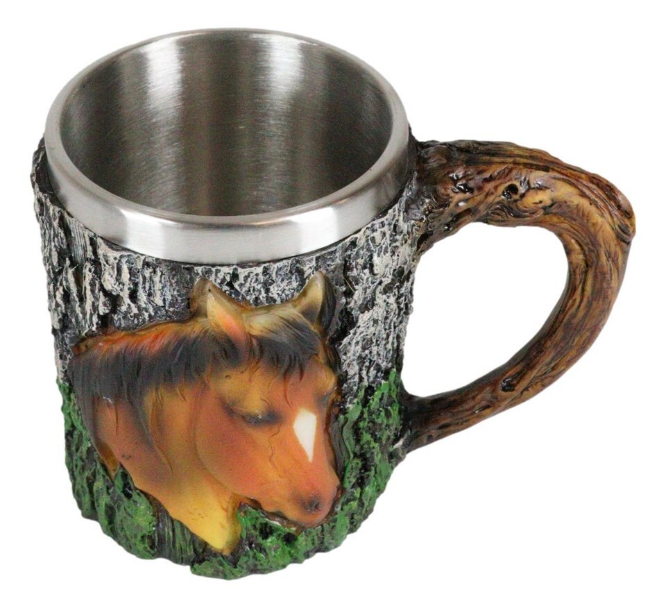 ? This Chestnut Horse Mug is made of high quality resin with stainless steel liner, individually hand painted and polished. Color Tone May vary from pictures.