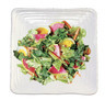 This white contemporary dinner serving plate measures approximately 5.75" Wide 8.25" Long and 1.25" High. Each plate weighs about 9 ounces.