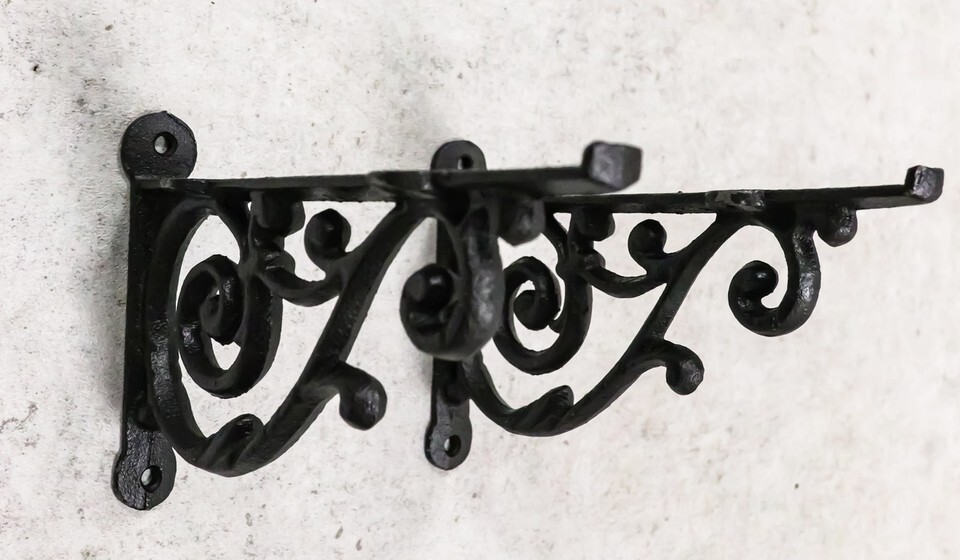 Ebros Set of 2 Cast Iron Black Decorative Victorian Scroll Wall Shelf Brackets 7.5" L