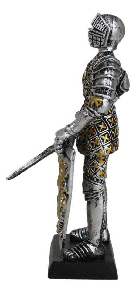 ? This medieval knight miniature figurine is made of high quality polyresin. It is meticulously hand painted and polished. Color tone may vary from pictures.