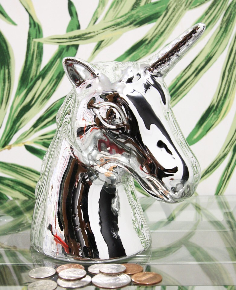 Electroplated Silver Sacred Unicorn Head Money Coin Bank Figurine Kids Adults