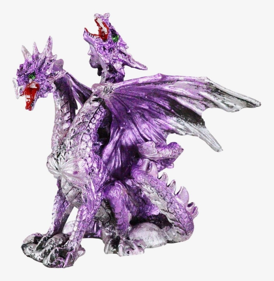 Fearsome Metallic Purple Double Headed Hydra Dragon Fantasy Figurine 4.75"H