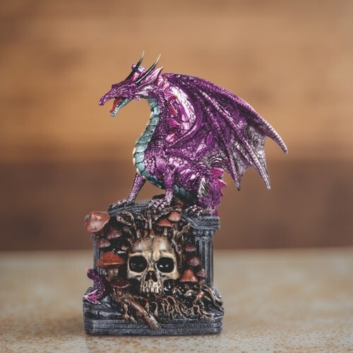 ? This Crouching Purple Dragon Figurine is made of high quality designer resin, individually handpainted and polished. Because each piece is partially hand crafted, color tone may vary from pictures.
