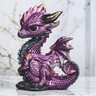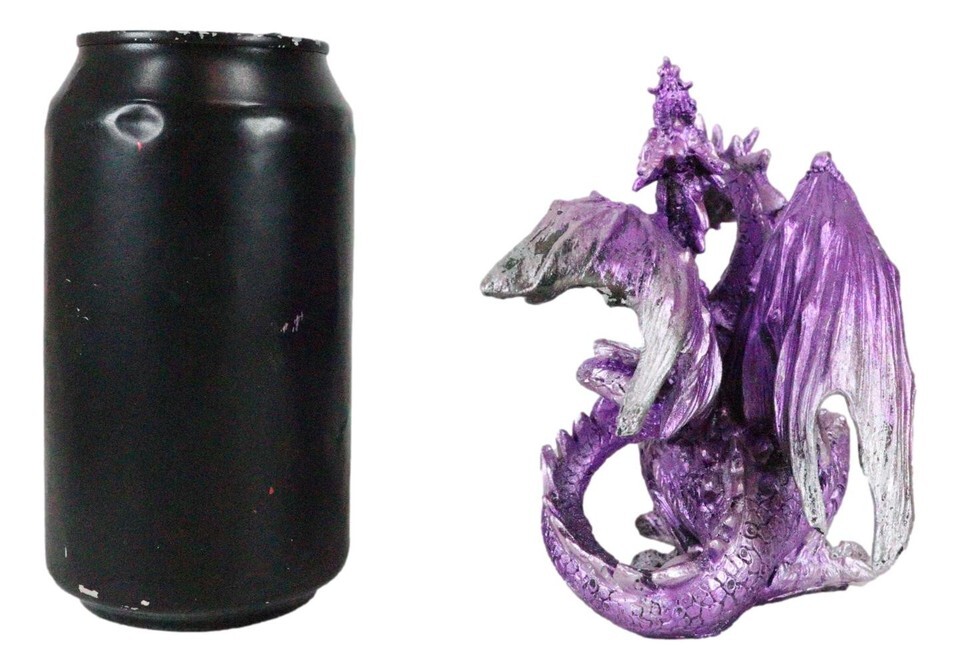 ? This Crouching Purple Dragon Figurine measures 4.75" tall, 5.25" wide and 3.25" deep approximately. It weighs about 8 ounces.