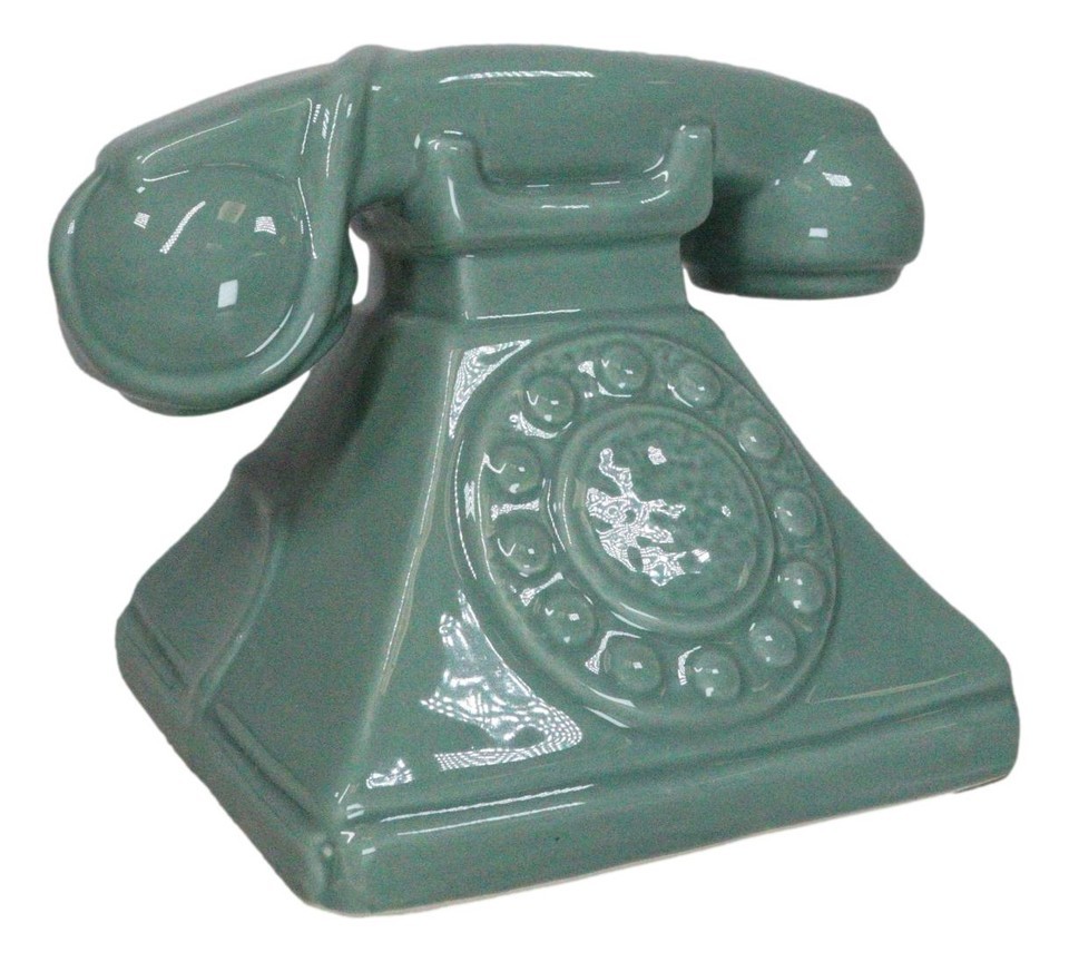 ? This Vintage Rotary Telephone Money Bank Figurine is made of ceramic, hand painted and polished individually.