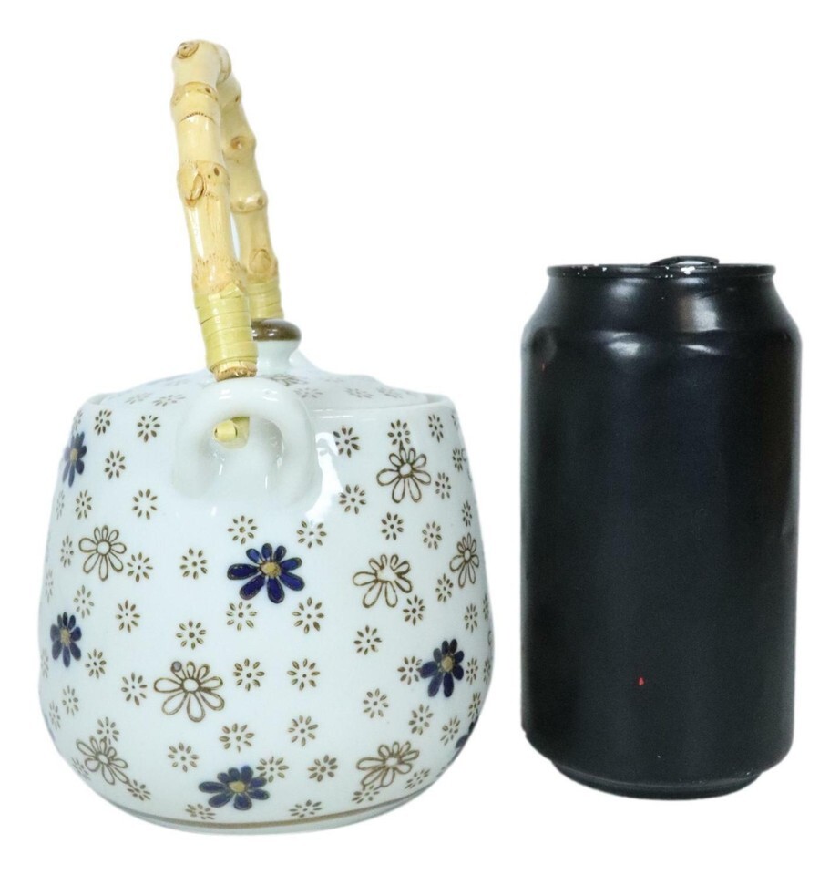 Ebros Japanese Cherry Blossom Rain 20oz Ceramic Tea Pot and Cups Set Serves 4 People