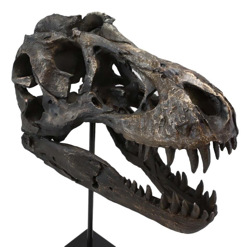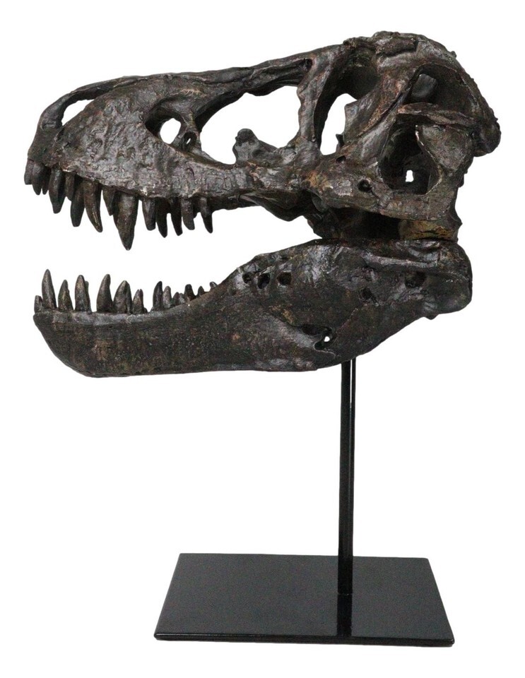 ? This aged bronze finish T-Rex is the most popular dinosaurs in the world. Known to be a merciless killer, the T-rex is the apex predator of its era, characterized by its razor sharp giant teeth and pronounced strong jaw bones. For dinosaur lovers or palaeontology lovers, the tyrannosaurus rex skull is a fantastic replica.