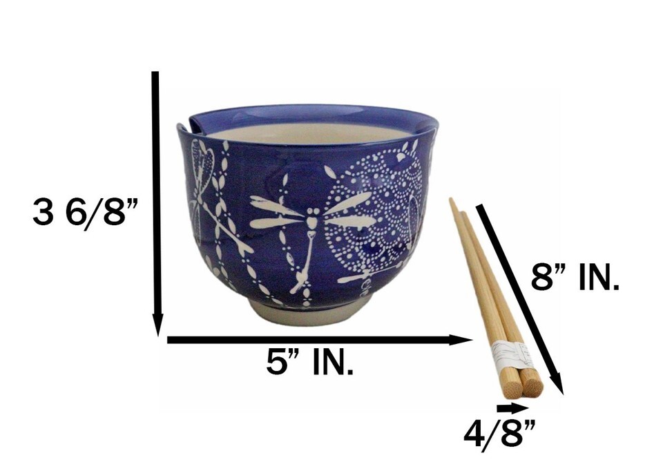 Auspicious Blue Tombo Dragonfly Ceramic Donburi Ramen Bowl With Chopsticks Set