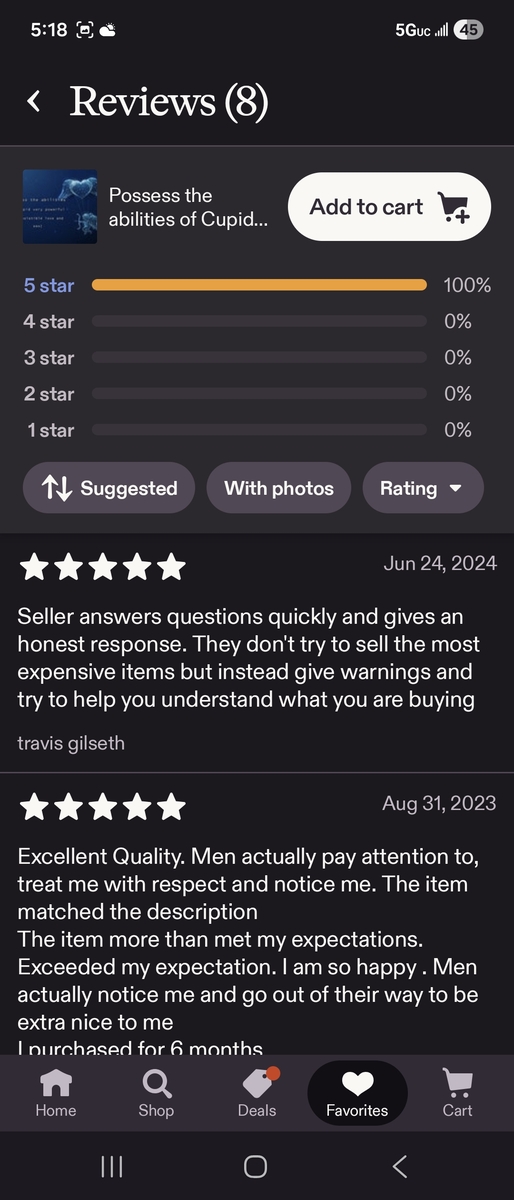 Hey there this is a powerful ritual one of a kind only sold on this shop! You will possess the abilities from Cupid of Love and lust. You can make anyone have sex with you or desire too as well as fall in love with you. You can also cause love or sex to happen between other people. This ability is powerful you can have an amazing sex life with your person or casual sex with others. Is there someone you like or maybe more then one? You can make them want and like you back with this ability.
