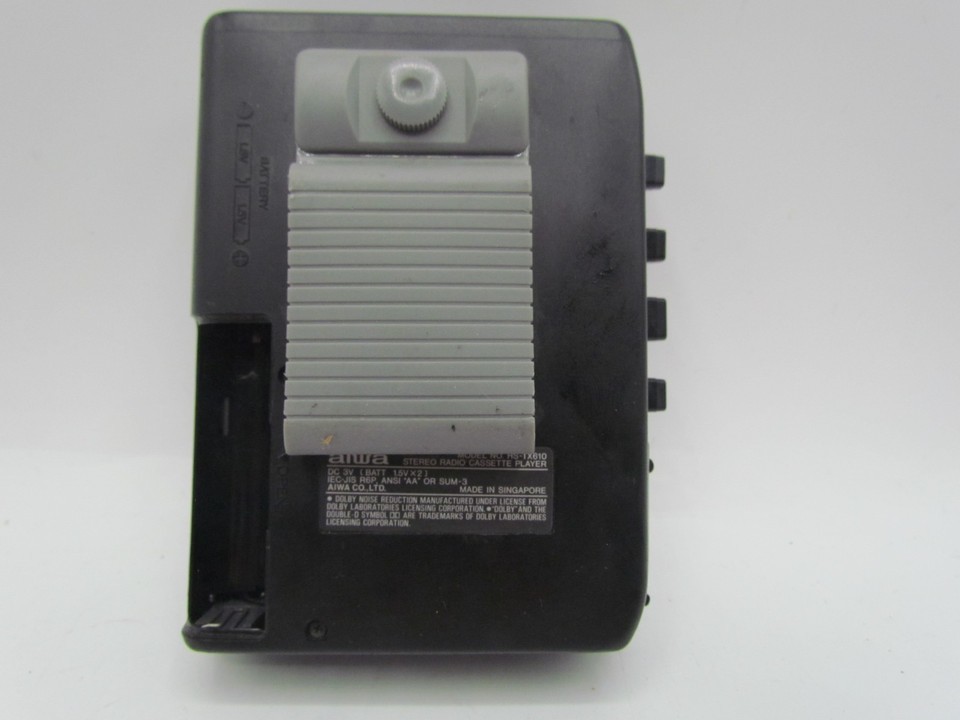 The AIWA TX610 Walkman is a stereo radio cassette player that features a black color design. It is equipped with a headphone jack for audio output and is capable of playing cassette tapes. The radio tuner of the device is AM/FM, making it versatile for listening to various radio stations. This portable audio device from the Aiwa brand is perfect for those who enjoy listening to music on cassette tapes while on the go. The radio works and the battery cover is missing see pictures.