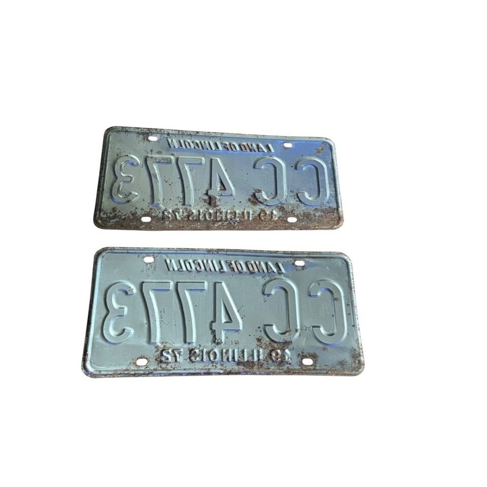 Vintage 1972 Illinois License Plates Pair CC 4773 Land of Lincoln ALPCA Retro