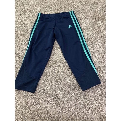 Children Youth Girl's Adidas Navy Blue White Striped Yoga Capri Pants 30904