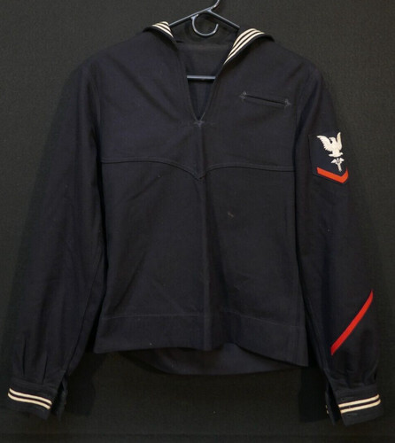 Our MILITARY TOPS are 100 percent Authentic US NAVY CRACKER JACK BLOUSE , we take pride in selling some of the most Authentic Military Gear known in the Industry, Each Item has a size Label in each one of them , However we go one extra step and provide exact measurements in our pictures, we provide measurements for the Chest, arm length, and length. We wash each Item Twice, we will list every defect in our Auction. Each Top has been Inspected and although some have minor issues we pride our sales on showing every Inch in our pictures. Thank you for looking at our Store, we have sold over 10,000 Assorted Military Jackets, Tops, and Shirts, and have feedback from our customers to back up our quality, please take a quick minute to check out our feedback for the Military Gear we have sold.