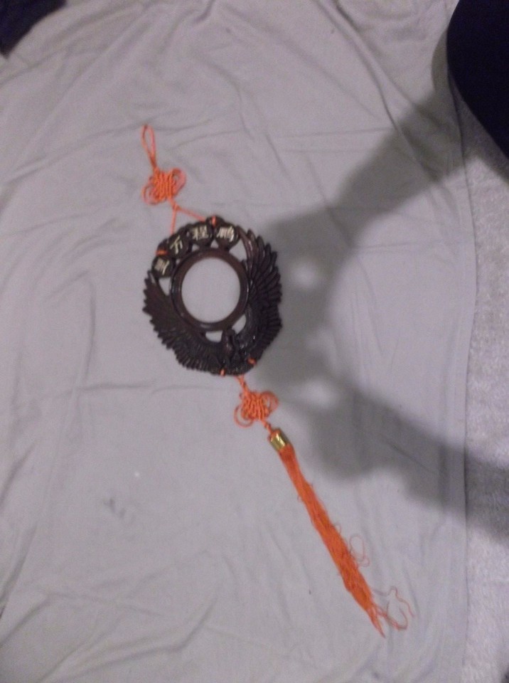 Heavy Middle Piece is a Maroon color with Chinese symbols and a beautiful Large Bird