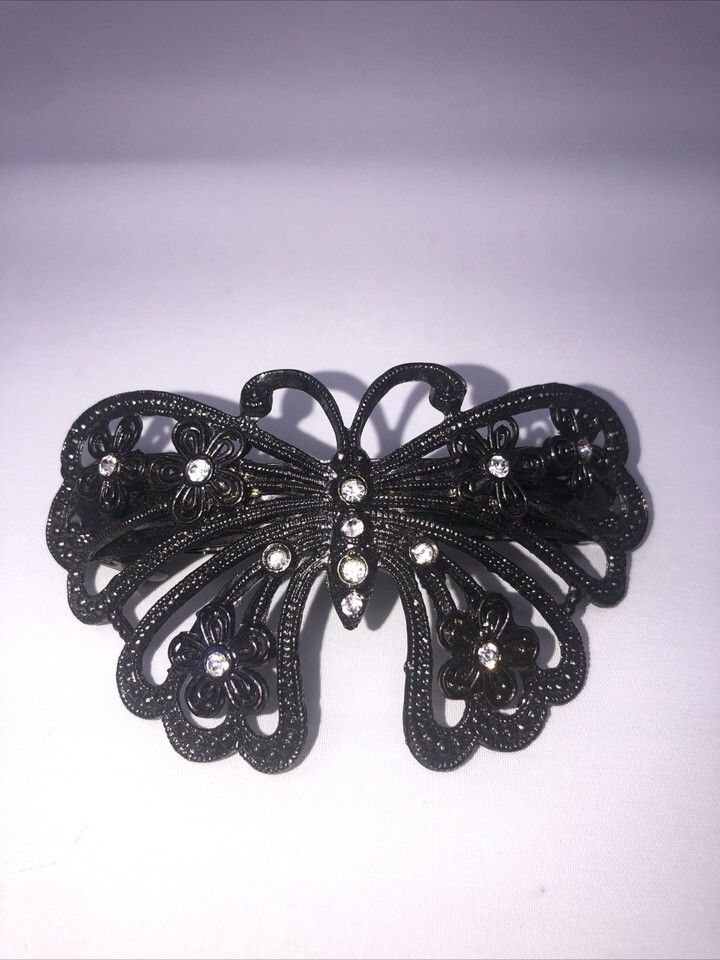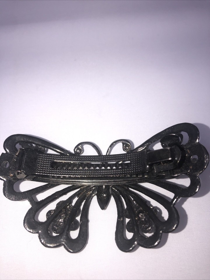Vintage Metal Silver Colored Butterfly Barrette/ Gemstones