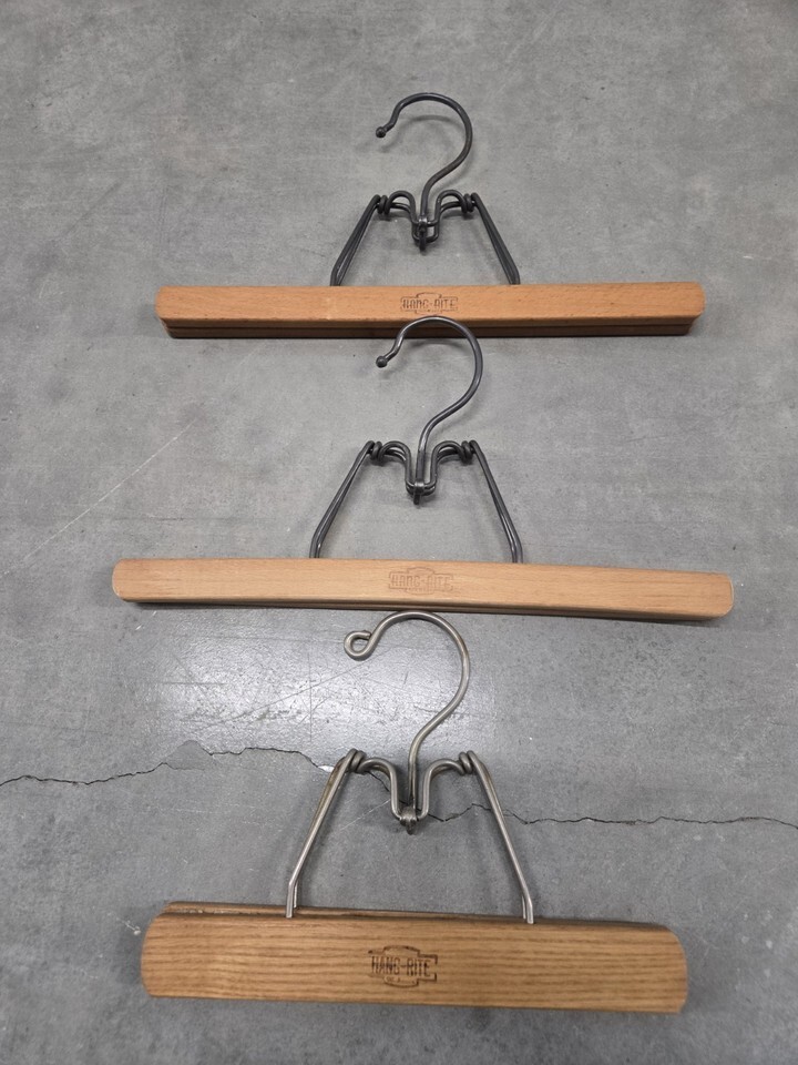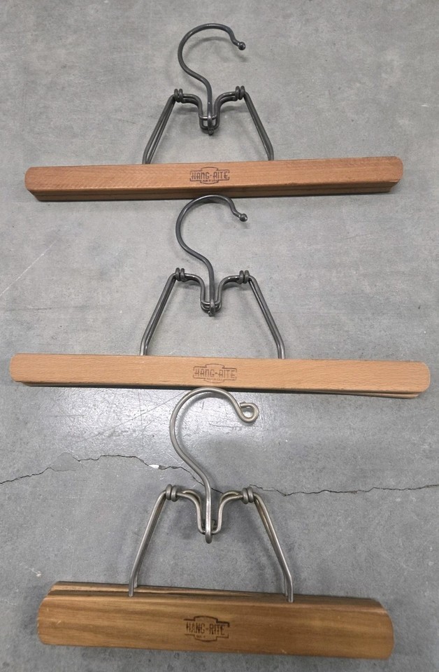 Set Of 3 Vintage Hang Rite Wooden Pants Skirt Clamp Style Hangers