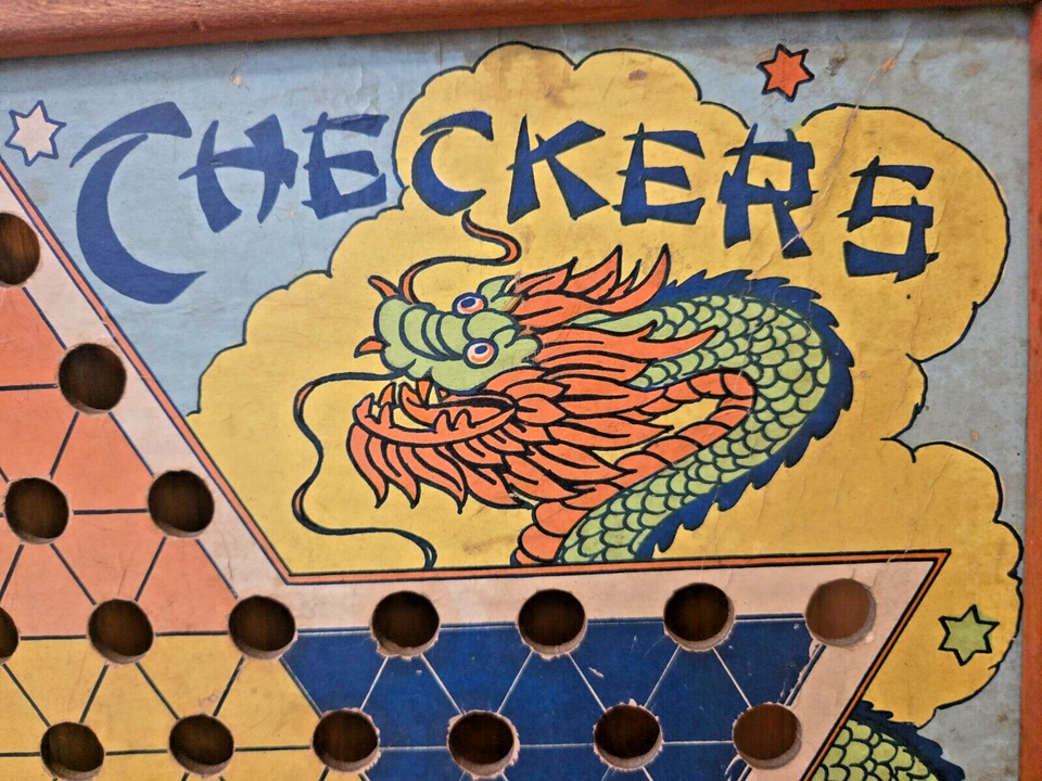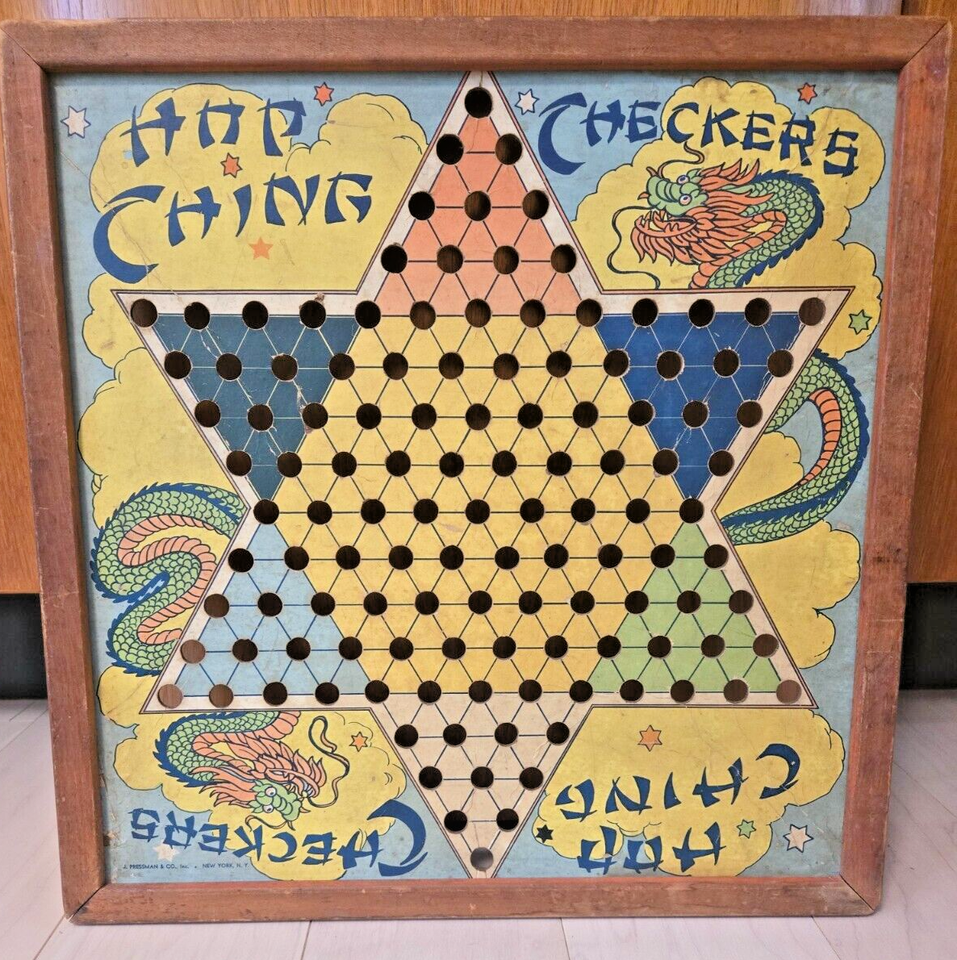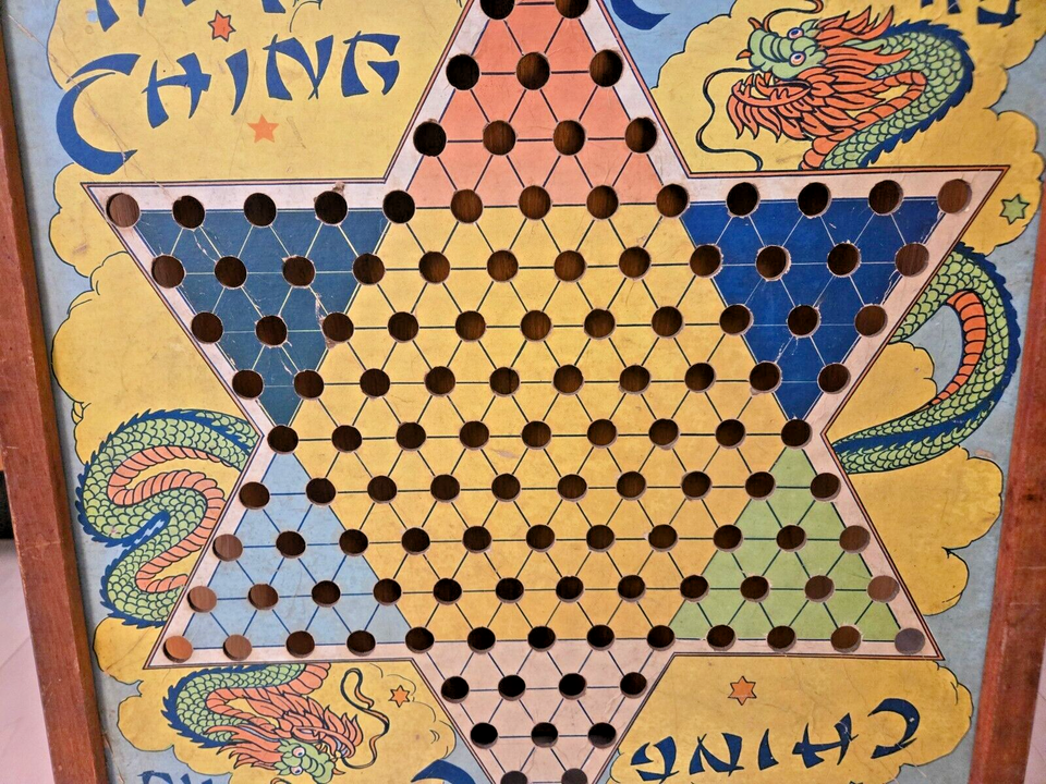 Vintage Great Patina 1940's Chinese Checkers Hop Ching Board,J Pressman Co.