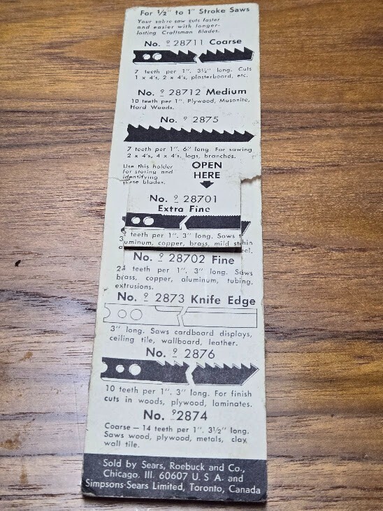 Up for bid is a vintage Sears Craftsman model 9 1877, 3 1/2" long, 7 teeth per 1", Sabre saw blade