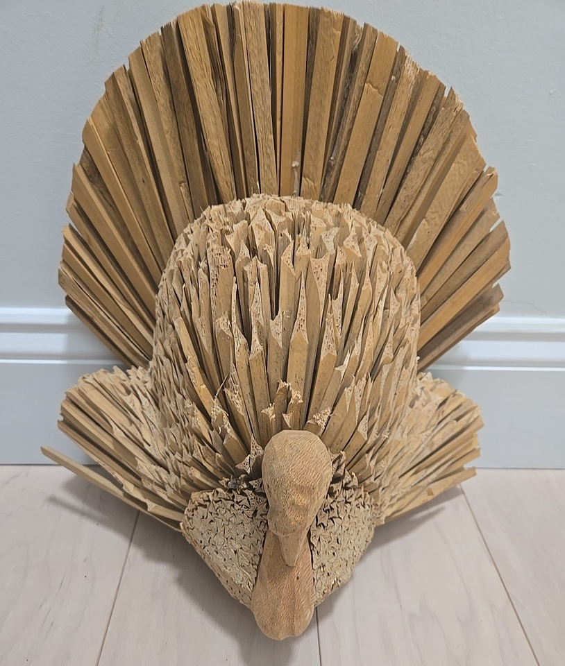 Hand Crafted Corn Husk Wood Turkey Folk Art and similar items