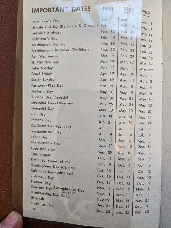 1981 TravelDate Calendar Book Freemasons Ansantawae Lodge #89