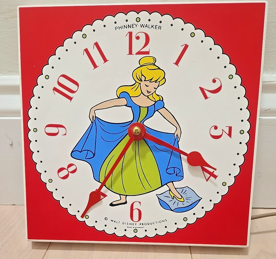 Vintage Cinderella Electric Wall Clock Phinney Walker Walt Disney Productions