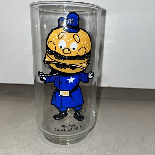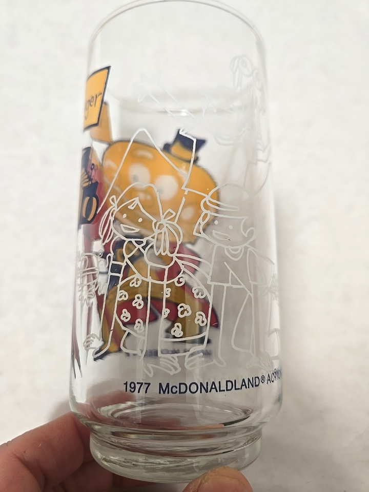 Up for bid is a 1977 promotional glass from McDonalds featuring 1977 Mayor McCheese