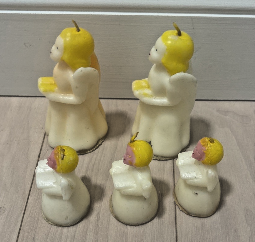 Lot Of 5 Vintage Tavern Novelty Angel Candles: 2 large & 3 small