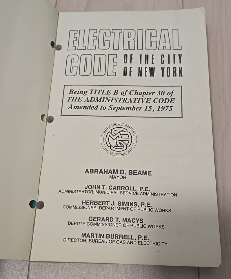Vintage 1975 NYC Book Electrical Code of the City of New York Mayor Abe Beame