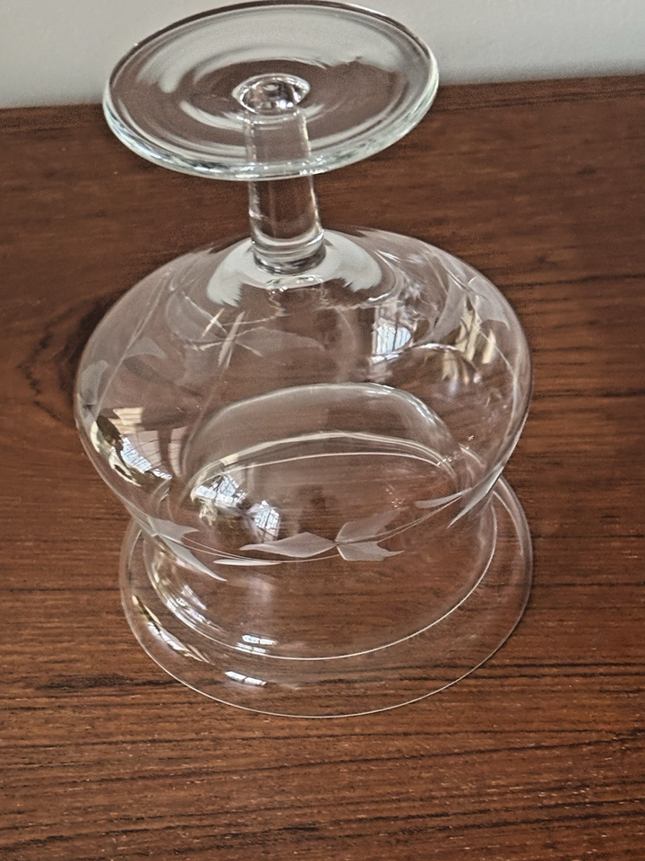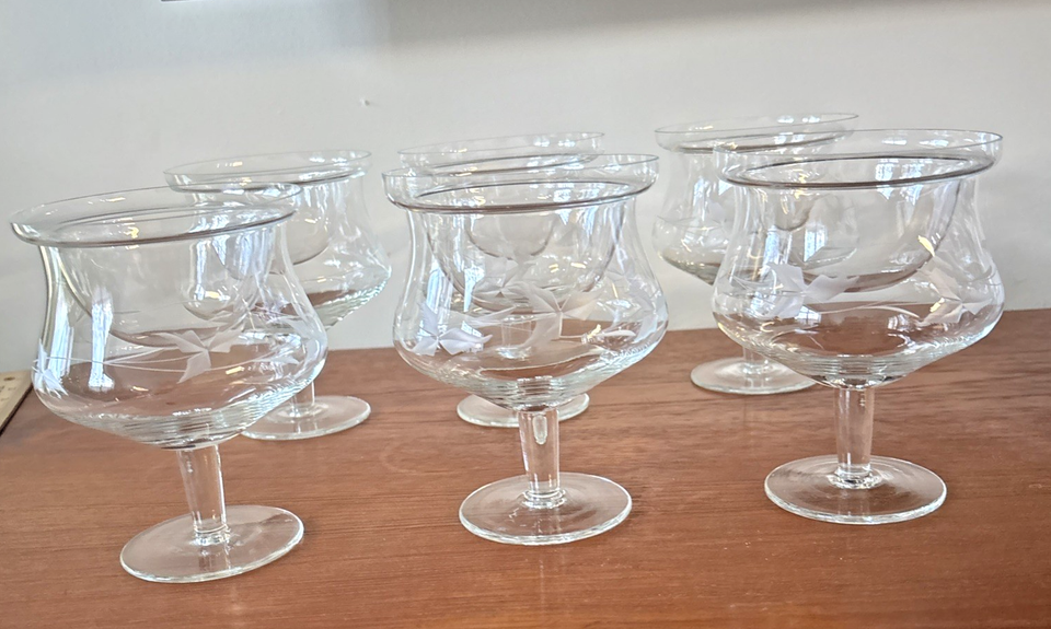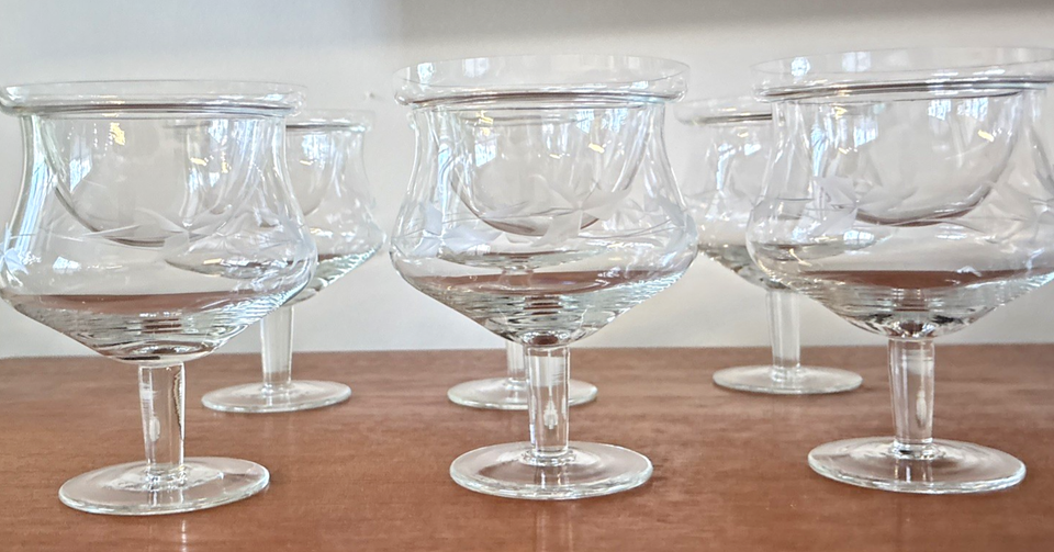Vtg. Shrimp Seafood Cocktail Glass Icers 2 Pieces Leaf Etched Vintage Set Of 6