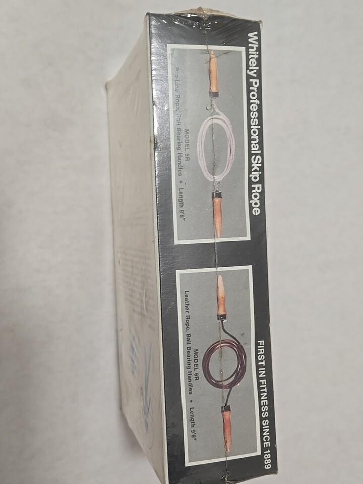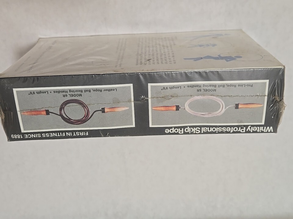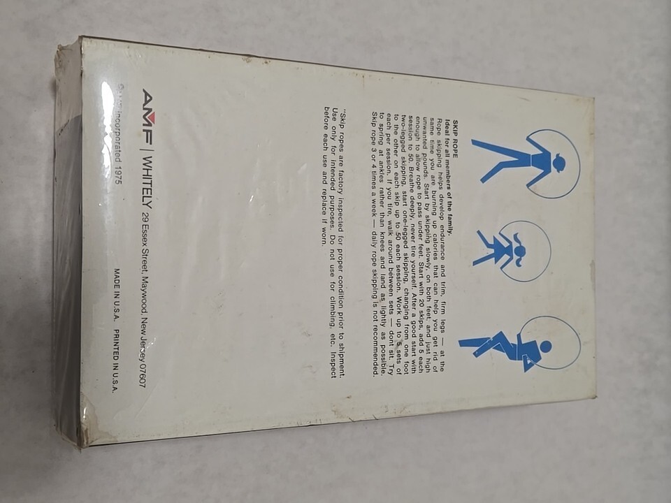 Up for bid is a Vintage AMF Whitely Skip Rope Model 5R Wooden Bearing Handles w/Box Professional in its original packaging. The cellophane o the front is torn as shown in photos. Pleasenseenall photos before making a bid.