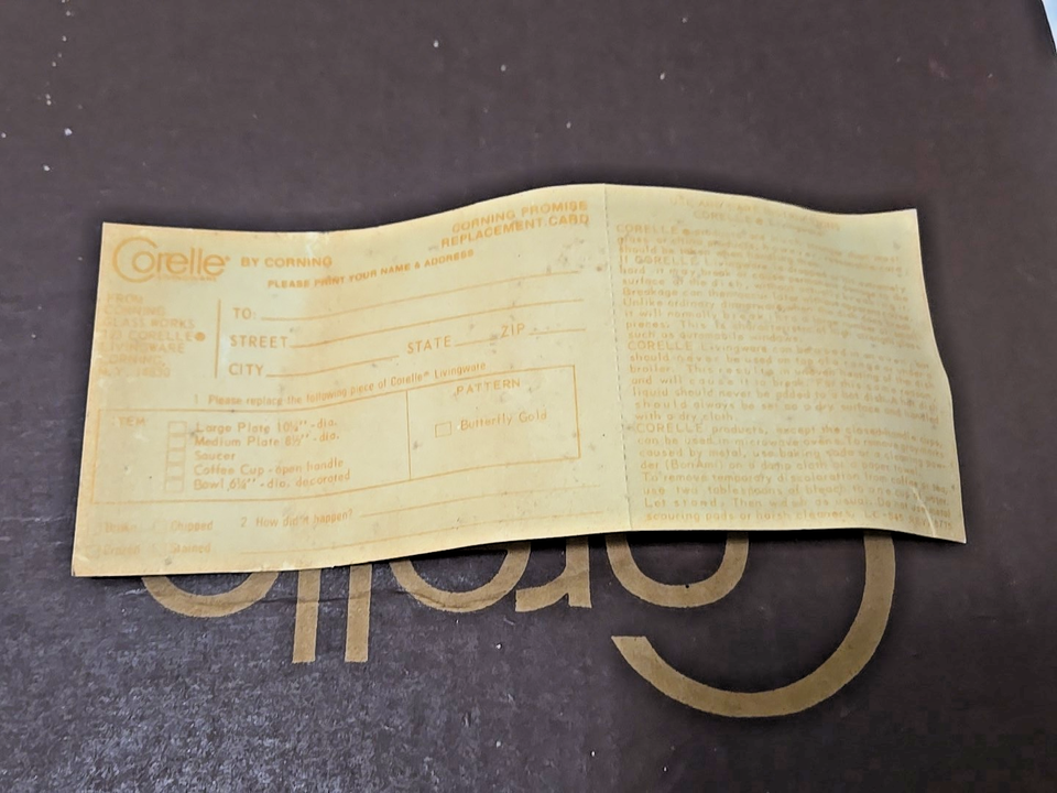 Vintage Open Box Corelle Corning 5pc Place Setting Butterfly Gold Livingware