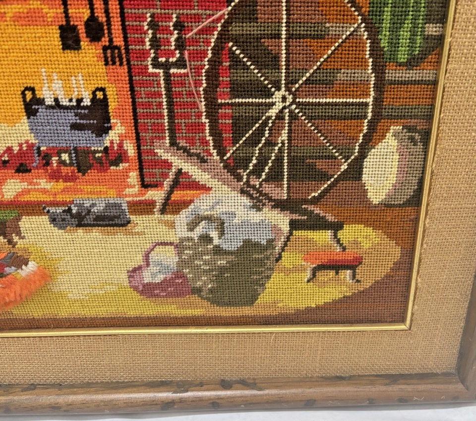 Needlepoint Colonial Fireside Scene In Frame 23" X 18.6"