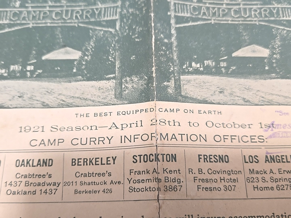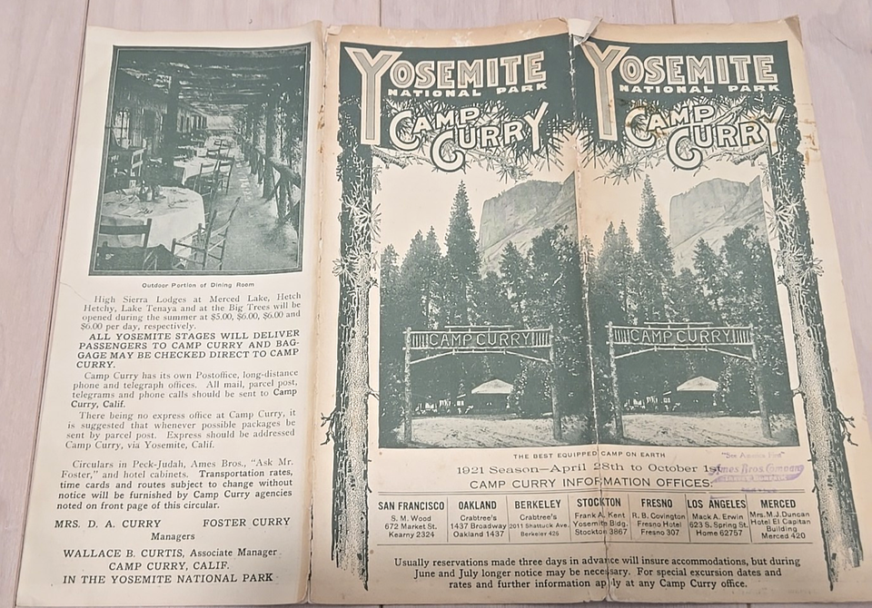 Up for bid is a 1921 camp brochure from Camp Curry, which was located in Yosemite National Park.