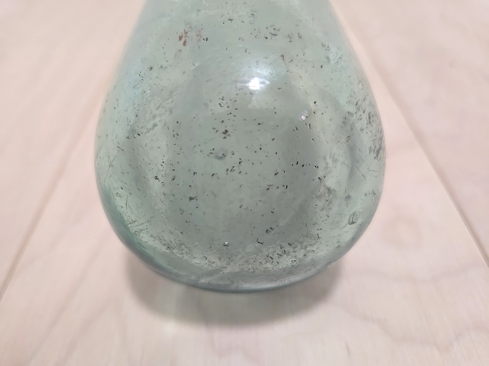 19th Century Green Aqua Glass Blob Top Torpedo Bottle 9.5” Round Bottom