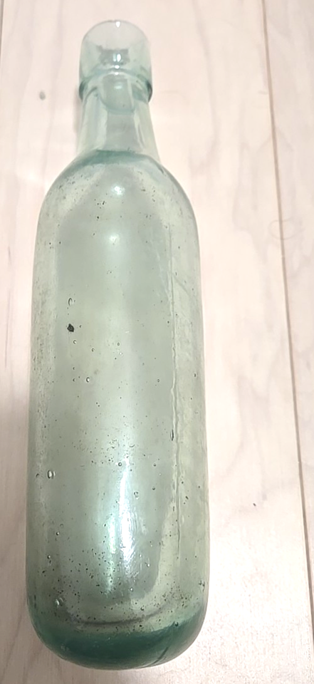 Up for bid is a vintage,19th century, aqua green 9 1/2" round bottom, blob top bottle.