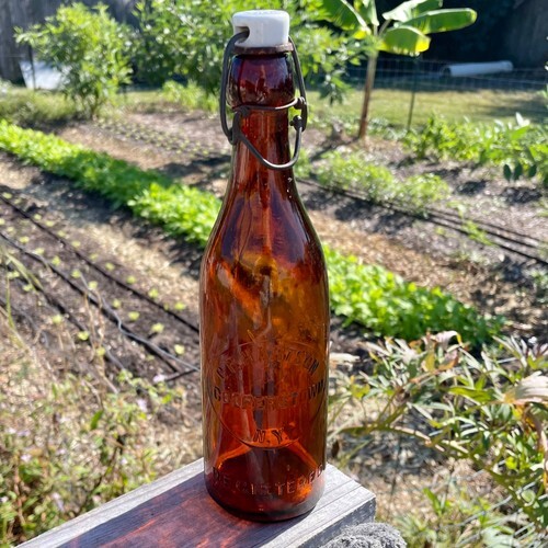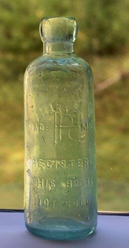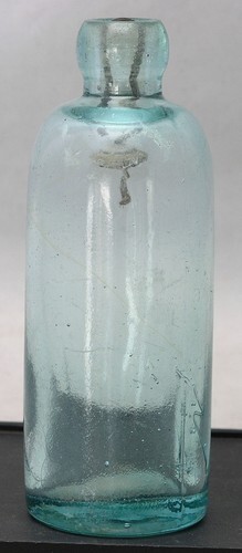 This class of soda/mineral water bottles is unusual in that they were intended to not stand upright. Instead, the rounded or pointed bases were designed to do the opposite of most bottle bases and ensure that the bottle was laid on its side so that the wired down cork would not dry out and shrink allowing the contents to loose carbonation and/or evaporate.