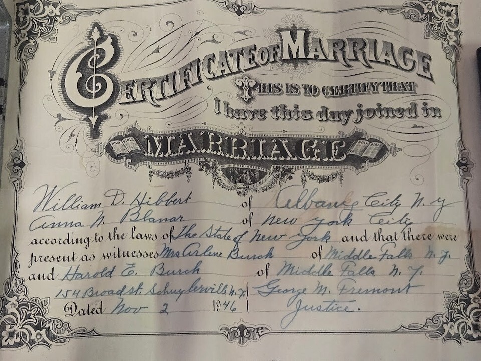 Vintage 1943 Pre WWII Marriage License Certificate New York State
