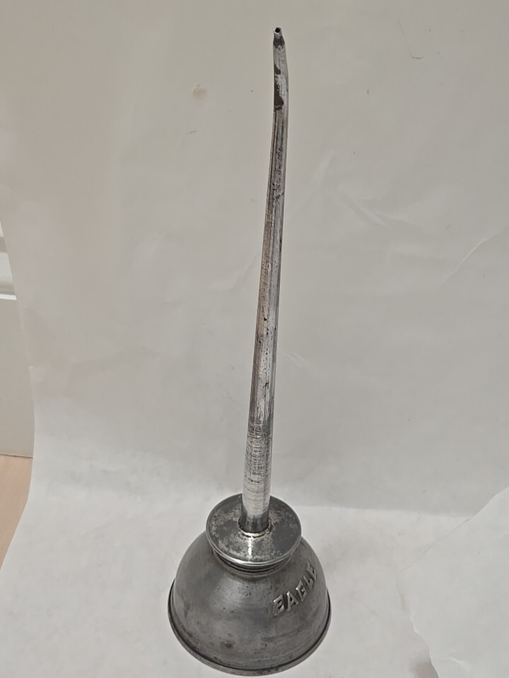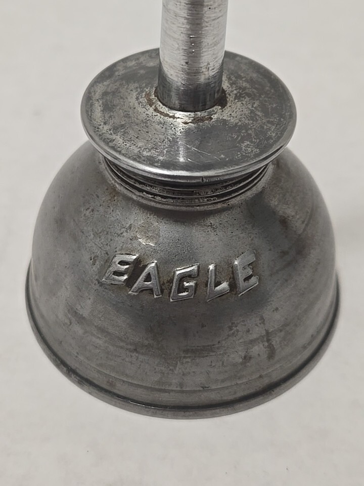 Vintage WW2 Era Steel Eagle Oil Can Thumb Pump Oiler Rounded Base USA