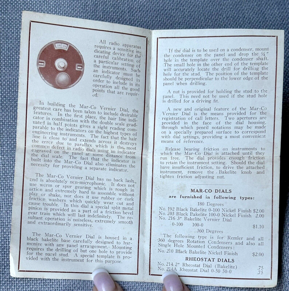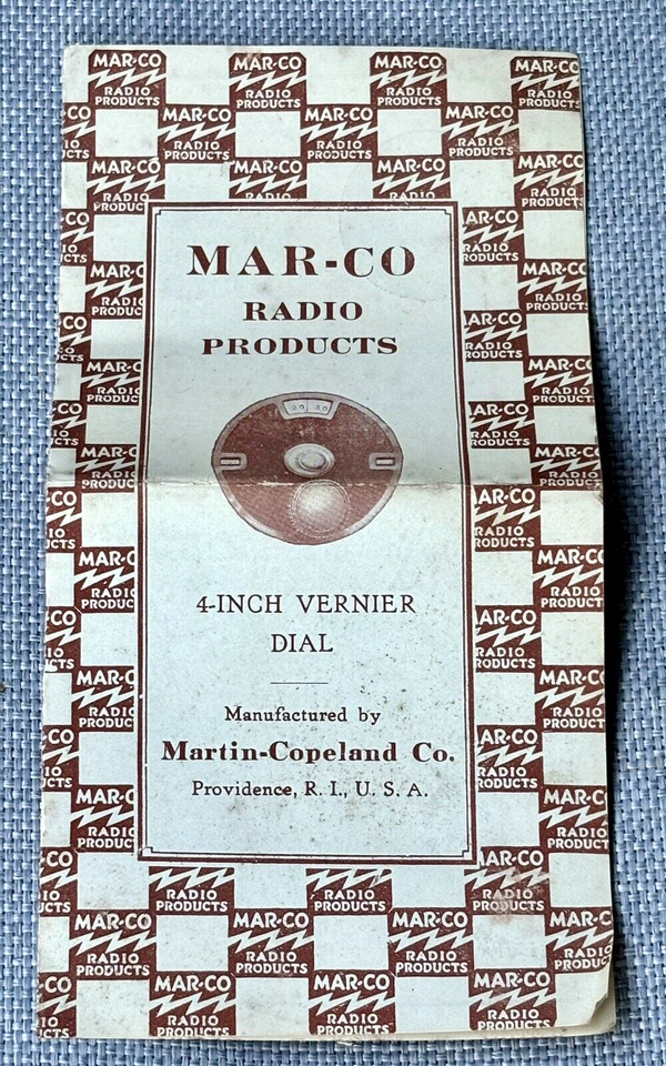 Up for bid is a vintage Martin-Copeland #192 Vernier 4" back Bakelite radio replacement dial with a nickel finish in it's original box and comes with instructions pamphlet shown in photos.